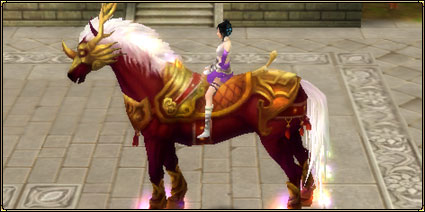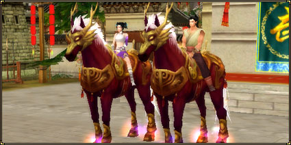 九大門派 80 坐騎,使用等級 80 級,移動速度增加 75% ,外表絢麗、獨一無二。參加挑戰縹緲峰及鳳凰陵墓副本活動,擊敗最終 BOSS 有一定幾率獲得 80 門派坐騎。可以在本門派教授騎術的 NPC 處學習騎術,學習騎術需要花費 1000 金交子