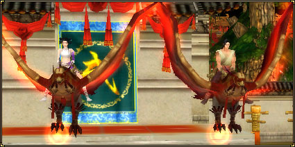 九大門派 80 坐騎,使用等級 80 級,移動速度增加 75% ,外表絢麗、獨一無二。參加挑戰縹緲峰及鳳凰陵墓副本活動,擊敗最終 BOSS 有一定幾率獲得 80 門派坐騎。可以在本門派教授騎術的 NPC 處學習騎術,學習騎術需要花費 1000 金交子
