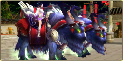 九大門派 80 坐騎,使用等級 80 級,移動速度增加 75% ,外表絢麗、獨一無二。參加挑戰縹緲峰及鳳凰陵墓副本活動,擊敗最終 BOSS 有一定幾率獲得 80 門派坐騎。可以在本門派教授騎術的 NPC 處學習騎術,學習騎術需要花費 1000 金交子