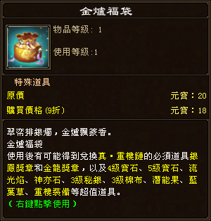 2.角色包裹內部分特殊材料的綁定狀態,會在獲得相同的綁定或是非綁定材料時,在系統安全機制判定下強制調整為綁定狀態,請特別留意。