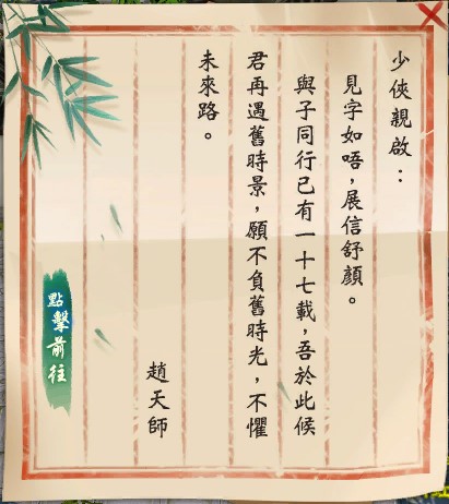 等級≥30級玩家,可前往大理(160,158)趙天師處,接取任務:再遇舊時景!根據指引回憶當年舊事,完成任務後,方可開啟共赴江湖夢系列活動。