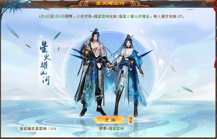 通過參與週年系列活動有機會獲得星雲綃,集齊4個星雲綃即可在星火耀山河介面內領取星火耀山河禮盒,週年慶系列活動將會陸續開啟。