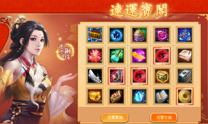活動期間參加連運寶閣(等級達到15級的俠士可通過主介面上方的連運寶閣按鈕參與活動),將可獲得豐富獎勵!