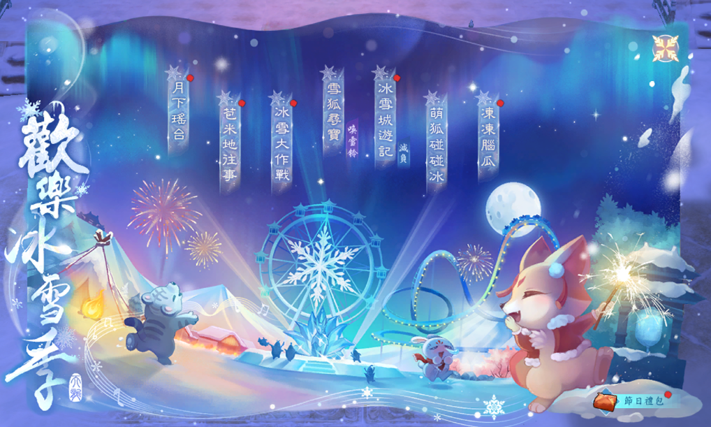 1.等級≥30級的少俠可點擊歡樂冰雪季介面雪狐尋寶按鈕或前往冰雪不夜城(167,205)雲逸逸處參與活動,使用喚雪鈴召喚雪狐在遊樂園中尋覓寶物。