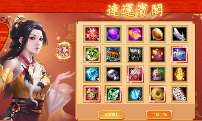活動期間參加連運寶閣(等級達到15級的俠士可通過主介面上方的連運寶閣按鈕參與活動),將可獲得豐富獎勵!