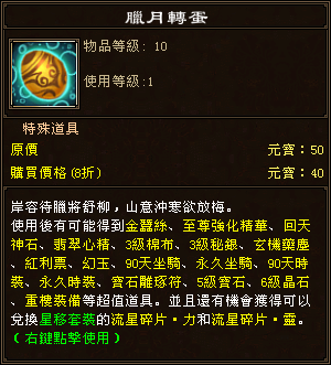 元寶商店上架:臘月轉蛋(販售價格以遊戲內實際顯示為主)